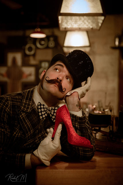 Russell Bruner is Vaudevillian sex appeal in seersucker and straw boaters! A mischievous, mustachioed devil of a man, Russell is a celebrated physical comedian, variety artist, swing dancer, emcee and boylesque peeler.